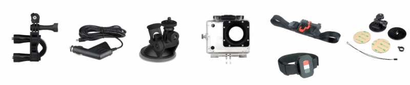 Sportowa kamera video Full HD 1080p/30fps, wbudowane WiFi, sterowanie pracą kamery za pomocą smartfona, sensor CMOS 5 MP, szerokokątny obiektyw 130° HD f/2.4, funkcja kamery samochodowej oraz kamery internetowej, w komplecie obudowa wodoszczelna do 45m, maks. pojemność karty 32GB, wymienny akumulator litowo-jonowy o pojemności 1200mAh, złącze USB, HDMI, w komplecie pilot zdalnego sterowania i systemy mocowania kamery.