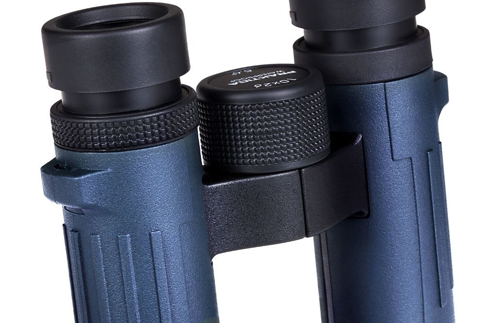 Wodoszczelna lornetka turystyczna z obudową ze specjalnego stopu i gumowana, z pryzmatem dachowym BAK4, wypełniona azotem, powiększenie 10-cio krotne, szklane obiektywy o średnicy 26mm, wszystkie soczewki wielokrotnie powlekane (fully mulit-coated), pole widzenia 98m na 1000m, wodoszczelna do 0,5m na 30 min., w komplecie pasek, osłony okularów i osłony obiektywów, etui i szmatka do czyszczenia. Lornetka w kolorze niebieskim.